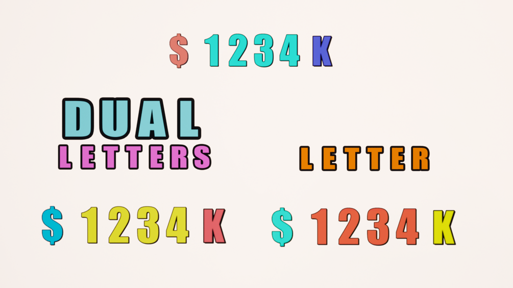 - Numbers: Write 4 digit Numbers and add Currency Sign and numerical value Symbols to it.
